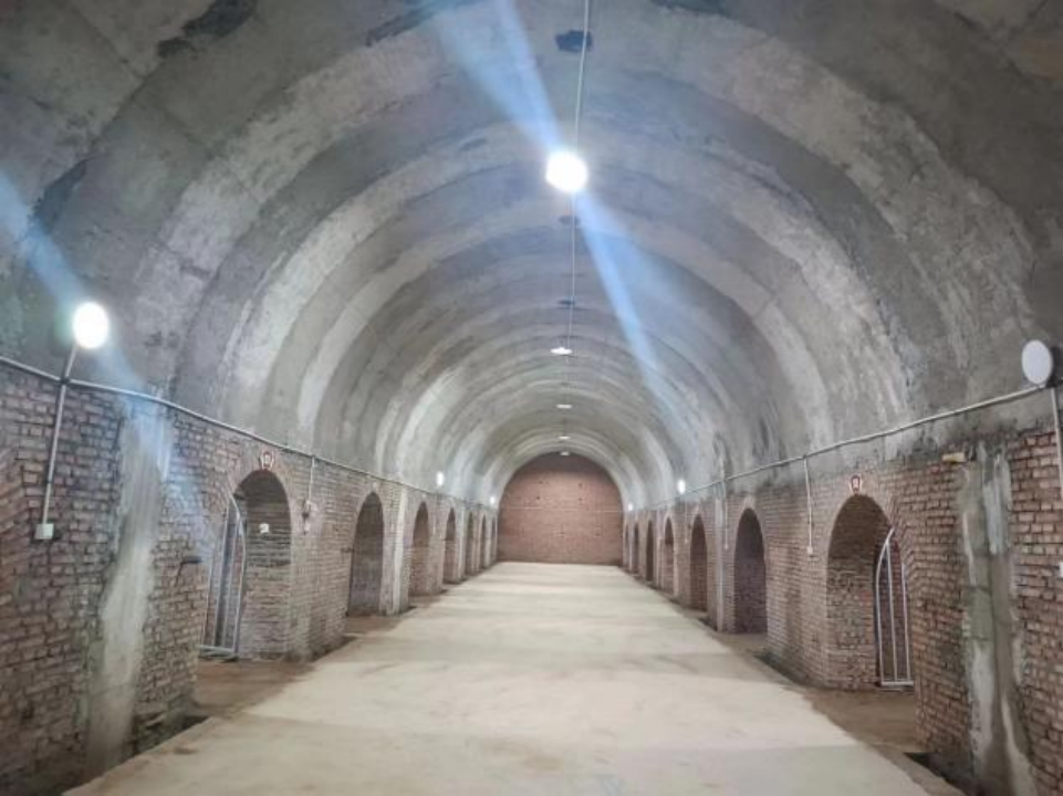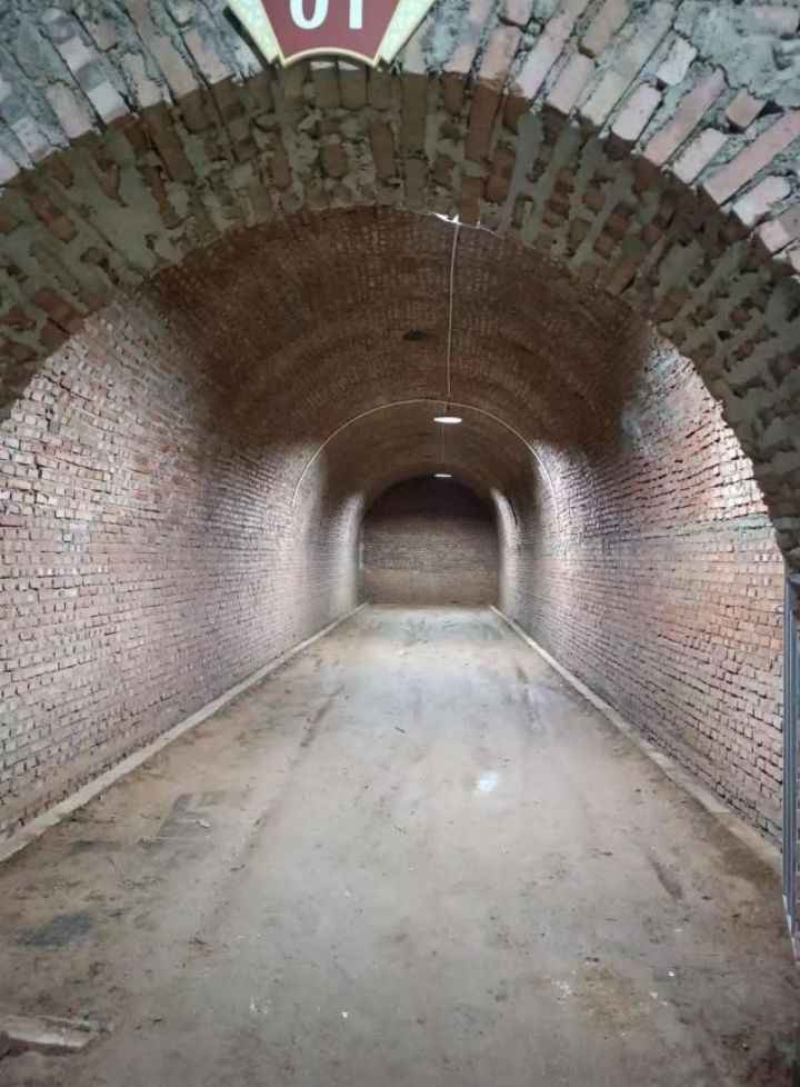 就在兩座山腳下中間部分,深挖到底下六米,里面是紅磚砌成的拱形結(jié)構(gòu)空間。</p>